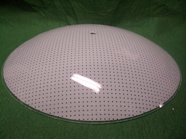 Round Glass Diffuser with a Dot Pattern.  Dimensions include: 8" diameter  7/16" centerhole, 5/8" Deep,  3/32" thick glass